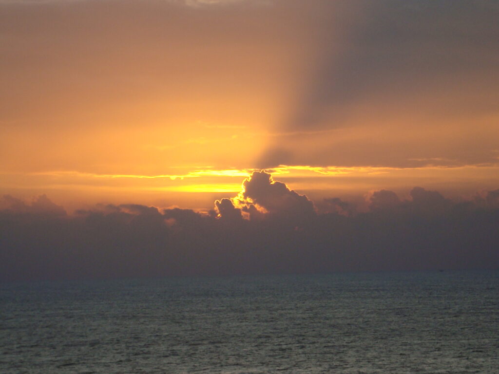 हॉटेलमध्ये जाऊन थोडी विश्रांती घेतली. आमचे कन्यारत्न तर पेंगुळले होतेच पण आम्ही दोघांनीही आमच्या हॉटेलरूमच्या समुद्राकडल्या खिडकीतून त्या दिवशीचा सूर्योदय बघितला. अगदी मंत्रमुग्ध होऊन आम्ही दोघेही ते दृश्य बघत होतो. “डोळ्यांचे पारणे फ़िटणे” या वाक्प्रचाराची अनुभूती येण्याचा तो क्षण. कॅमे-यानेही तो क्षण टिपला पण डोळ्यांनी जे बघितले त्याची अनुभूती कॅमे-याला कशी येणार ? काही मिनीटे निःशब्द होऊन, हातात हात गुंफ़ून आम्ही तो क्षण बघत होतो. आज आमच्या लग्नाचा ८ वा वाढदिवस होता. तो दिवस अशा एका अदभूत क्षणाने सुरू होऊन साजरा होणार होता याची कल्पना आम्हा दोघांनाही नव्हती.